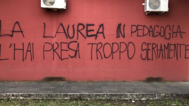 Ma la situazione comincia a sfuggire di mano. Iniziano a girare tra le chat dei ragazzi screenshot delle conversazioni tra i due, fino ad arrivare alle scritte difronte l’ingresso della scuola di Monteverde: “il tuo silenzio parla per te“, “la laurea in pedagogia l’hai presa troppo seriamente” e “chi sa deve agire“.